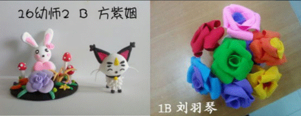 本次手工技能比武,参加此次比赛的是15,16级学前教育专业学生。参赛学生主要是学前教育学生通过自己所学的手工课程内容,通过自主创新,自己制作的手工作品,由学前教育专业万洪景老师、周津竹老师点评评分。学生们用橡皮泥、彩纸、绢花等做成贴画以及造型不同的工艺品。学生作品造型美观、设计感强烈,赢得了评委老师的一致好评。