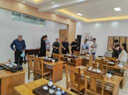 会后,与会人员参观了学校新投入使用的茶艺与茶文化专业实训中心,包括茶艺实训室、主题茶室、茶叶审评室、茶叶加工室、青少年茶文化体验基地等处。专家们对我校实训室建设赞不绝口,纷纷表示将来要与我校加强校企合作,共同实施茶产业产教融合一体化战略。