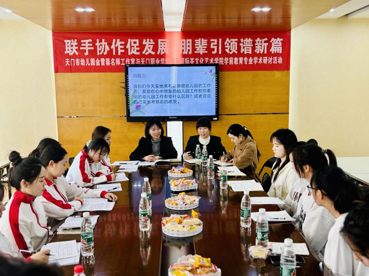 为适应高职院校教育改革发展新形势,进一步促进校企深度融合,提升人才培养质量,促进我院教师专业能力提升。3月20日,天门职业学院陆羽国际茶文化艺术学院学前教育教研室与天门市幼儿园金雪蓉名师工作室开展以“联手协作促发展 朋辈引领谱新篇”为主题的交流研讨活动。本次活动为高校与幼儿园搭建合作教学研究平台,促进高校教师深入体验幼儿园的教育教学工作,创新学前教育专业人才培养模式。