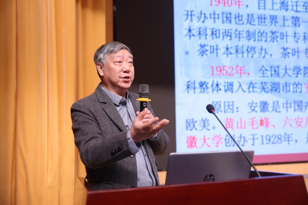 紧接着,安徽农业大学中华茶文化研究所所长、安徽省茶文化研究会会长丁以寿教授,以“中国茶学教育形成与发展概略”为主题,系统梳理了我国茶学教育从萌芽到构建完整体系的百年历程,详解各地茶学教育机构的发展特色与育人成果,为在场师生明晰了茶学专业的发展脉络。