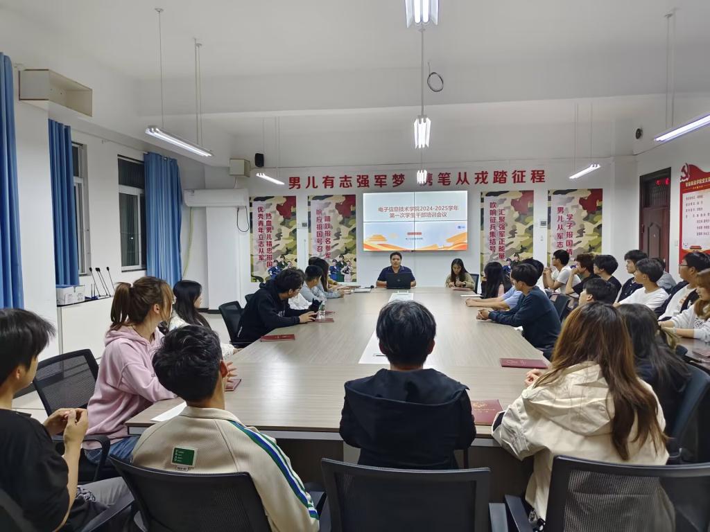 11月3日晚上,电子信息技术学院在5218会议室召开2024-2025学年第一次学生干部培训会议,学院各班级学生干部及学生组织相关负责人参加会议,会议由我院团总支书记钟雨主持。