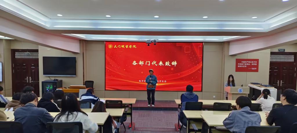 紧接着,各部门部长逐一上台,详细介绍了各自部门的工作职责、过去一年的工作亮点以及新学年的工作计划。从学习部的学风督察到组织部的创新团日活动,从文体部的多彩文艺演出到新媒体部的创意宣传视频,各部门都展现出了其独特的魅力和扎实的工作作风。部长们纷纷表示,将紧密围绕学院中心工作,积极策划和组织具有学院特色的文化活动,为同学们提供更多展示自我、提升能力的平台,为校园文化增添更多色彩。
