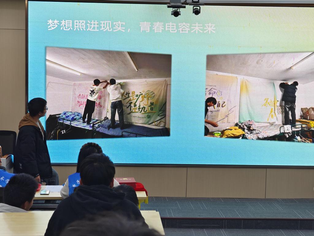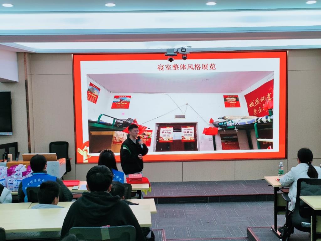 决赛现场,各寝室代表通过PPT展示、视频介绍及现场解说等形式,围绕“创意、舒适、环保、红色文化”等主题,展开了一场场精彩纷呈的创意对决。从布局规划到色彩搭配,从装饰品的选择到整体风格的营造,无不彰显出同学们的匠心独运和无限创意。