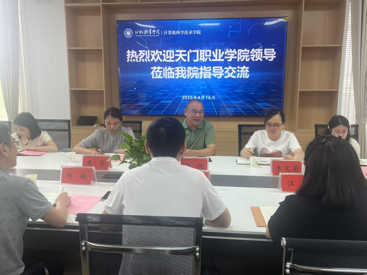 为进一步推动电子信息技术学院高质量发展,学习借鉴先进办学经验,2025年4月16日,电子信息技术学院党支部书记闵锐一行前往仙桃职业学院计算机科学技术学院开展交流学习。计算机科学技术学院党总支书记刘明江等领导表示热烈欢迎。