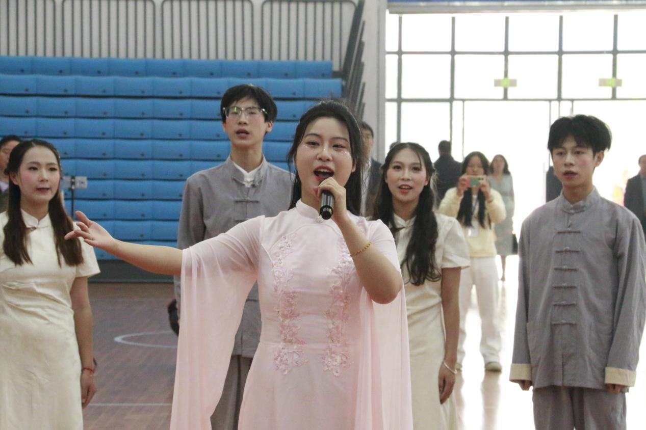 开幕式前,天门职业学院学生表演的节目歌舞《竟陵茶思》和啦啦操《舞之盛宴》,将现场气氛点燃。