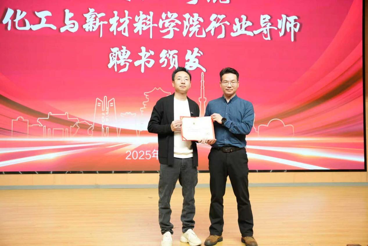 随后,鲁碧舫书记代表学院,正式聘请陈赟总经理与谭振董事长为化工与新材料学院“行业导师”,并颁发了聘书。这一举措标志着学院在推动校企协同育人方面迈出了坚实的一步,将为学生们带来更多来自产业一线的宝贵知识与经验。