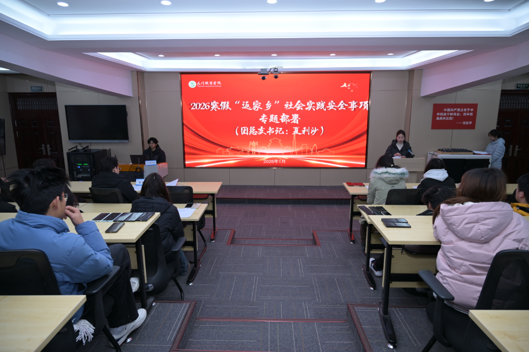 为全面保障学生寒假返乡安全,筑牢假期安全屏障,2026年1月20日晚,化工与新材料学院于马克思主义学院二楼报告厅召开2026年寒假“返家乡”安全部署大会。学院相关领导、团总支书记、全体参与“返家乡”活动学生及学生会全体成员参加会议。