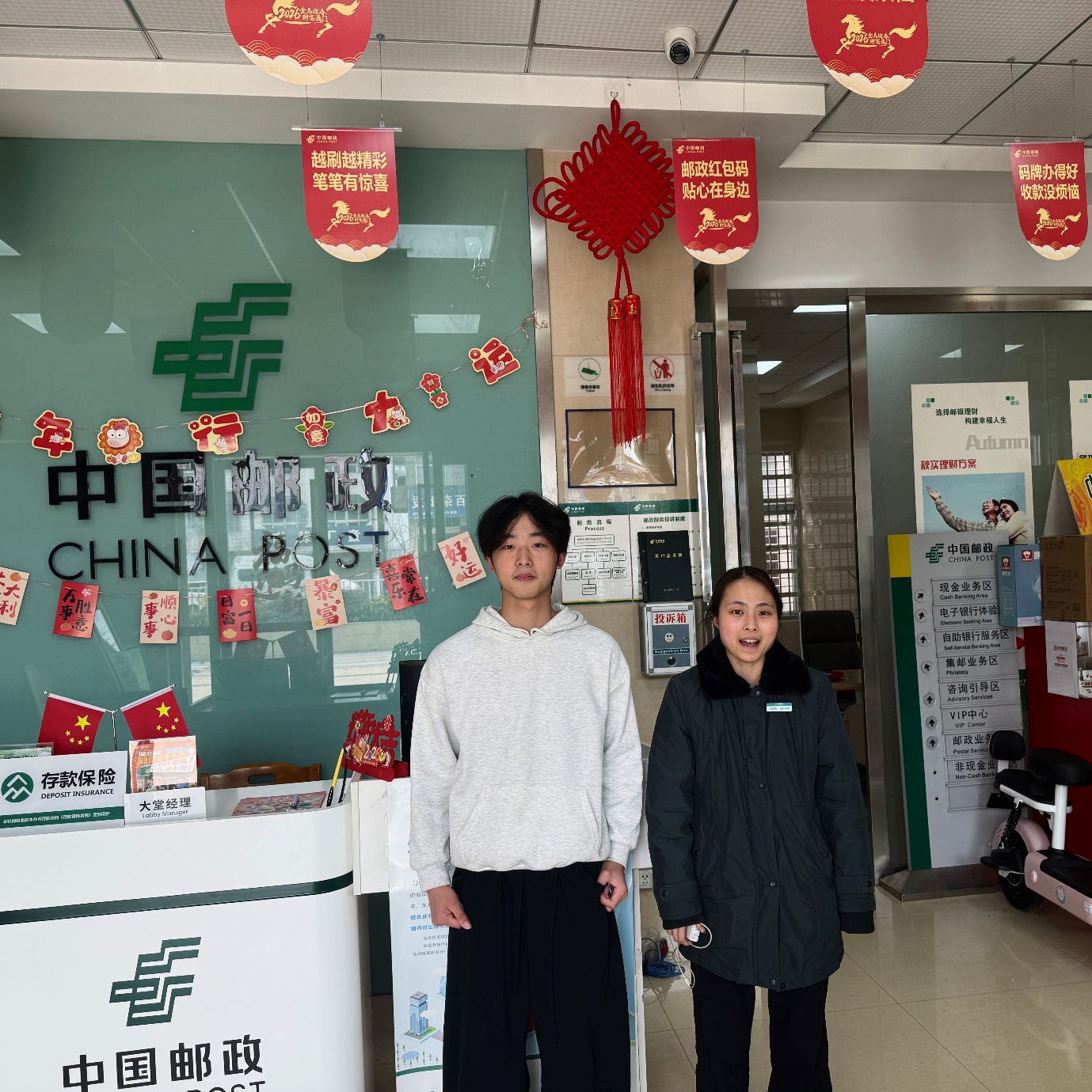化工智能制造技术2502班的颜开同学,将2026年寒假返家乡实践的脚步迈进了湖北省天门市岳口镇的邮政基层网点。在为期一个月的实践中,他协助办理业务咨询、引导客户、分拣包裹,并积极参与金融知识普及和反诈宣传。