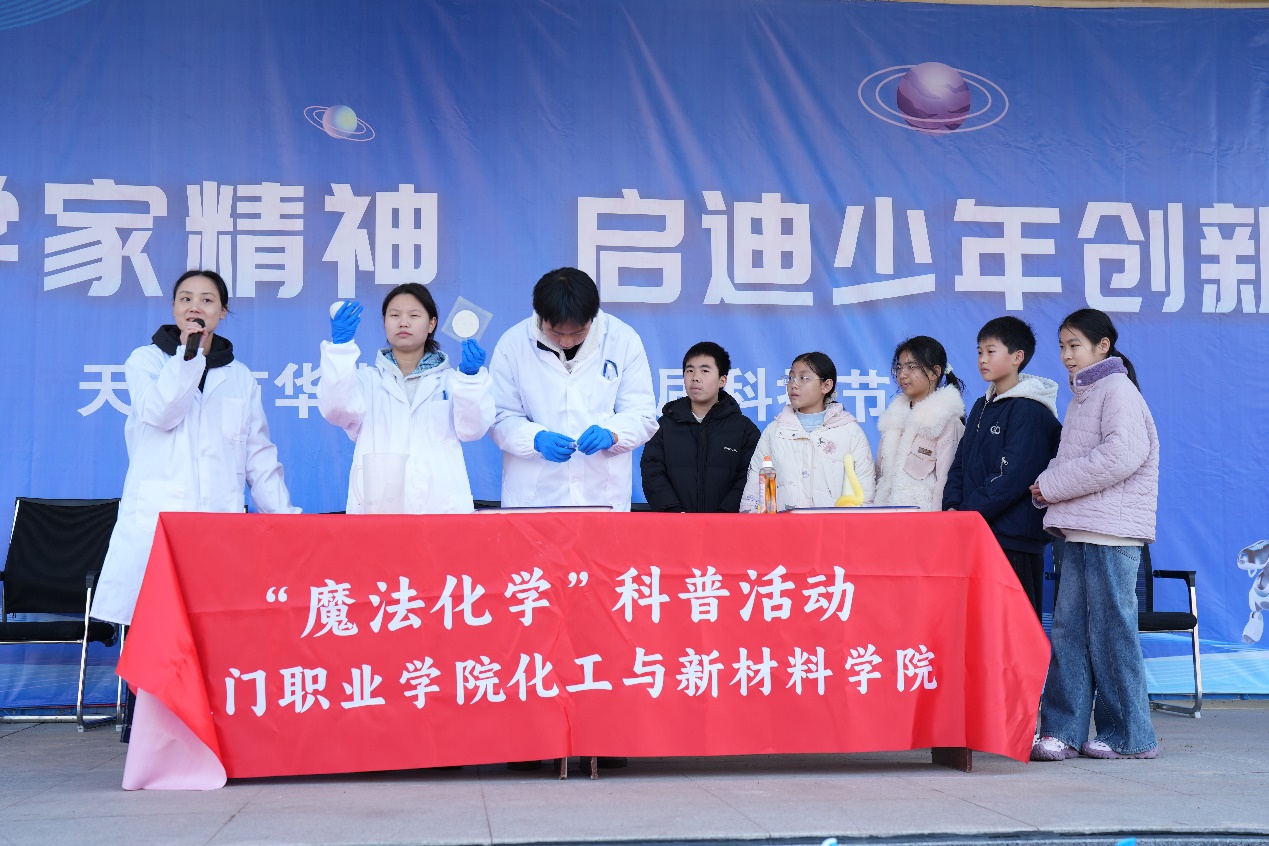 2025年12月25日,我院师生团队携“魔法化学”主题科普活动,走进华斯达学校首届科技文化节,为中小学师生带来了一场别开生面的沉浸式科学体验。本次活动在天门市科学技术协会的指导与华斯达学校的协作下顺利开展,是我院积极对接基础教育、发挥专业优势、服务地方发展的又一次生动实践。