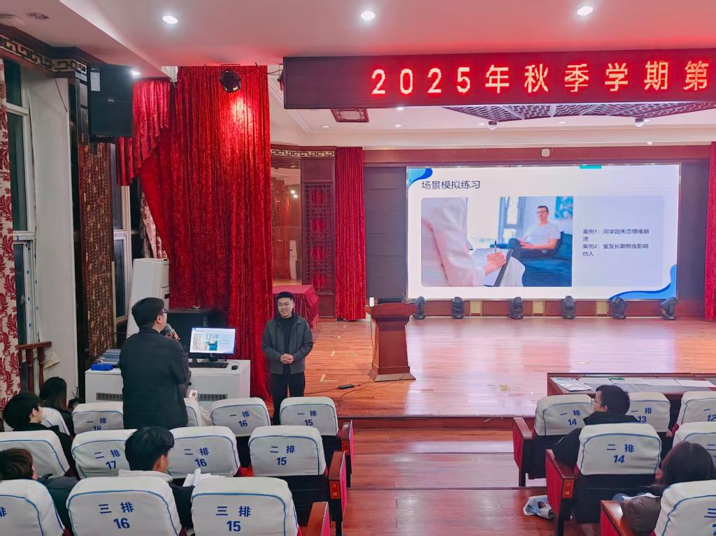 现场学习氛围浓厚,互动环节踊跃。在案例模拟练习中,心理委员们灵活运用所学沟通技巧,演练如何与陷入情绪困扰的同学建立信任、提供支持,展现了良好的共情能力与职业素养。