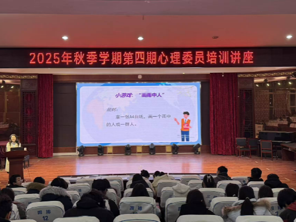 为进一步提升心理委员的心理健康服务能力,筑牢校园心理健康防护网,12月17日,我校第四期心理委员培训讲座在C栋报告厅顺利举办。本次讲座以“压力与情绪管理”为主题,由学校心理中心张玉婷老师主讲,全校心理委员及阳光心理社团成员共同参与。