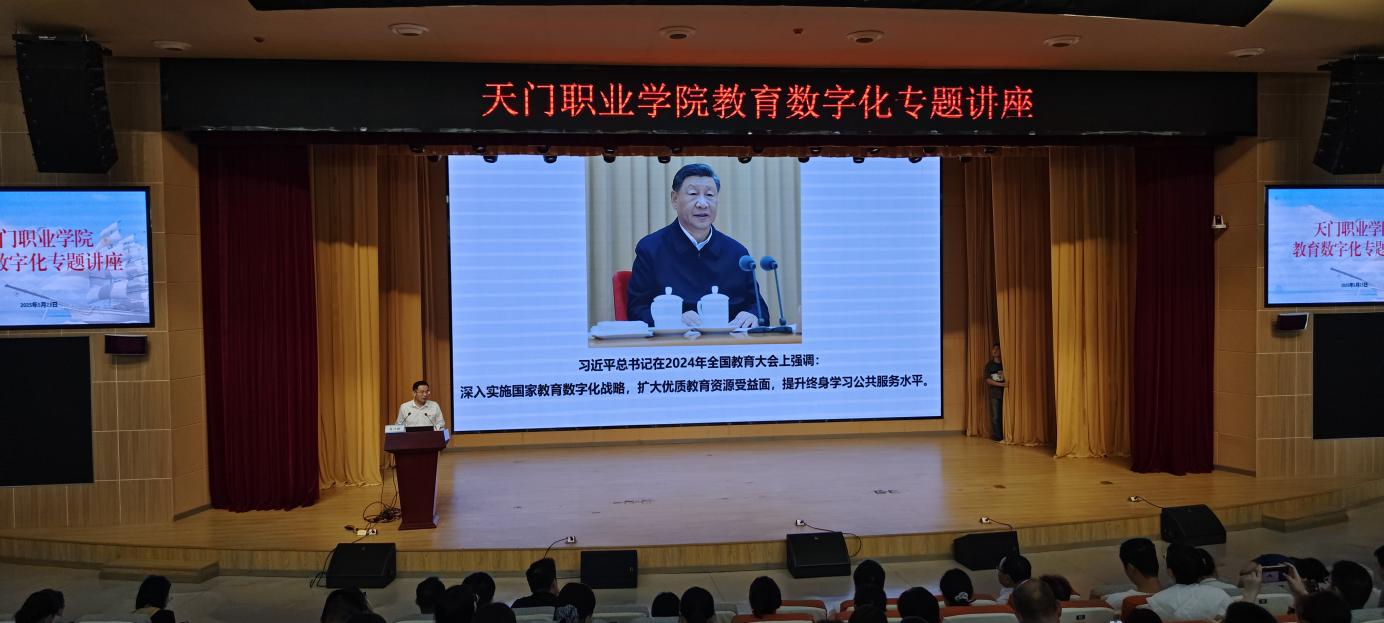 5月23日下午,天门职业学院学术报告厅举办“AI+职业教育创新:武汉软件工程职业学院的探索与实践”专题讲座。武汉软件工程职业学院(武汉开放大学)蒋兴鹏教授主讲,天门职业学院党委副书记、校长熊安锋主持。