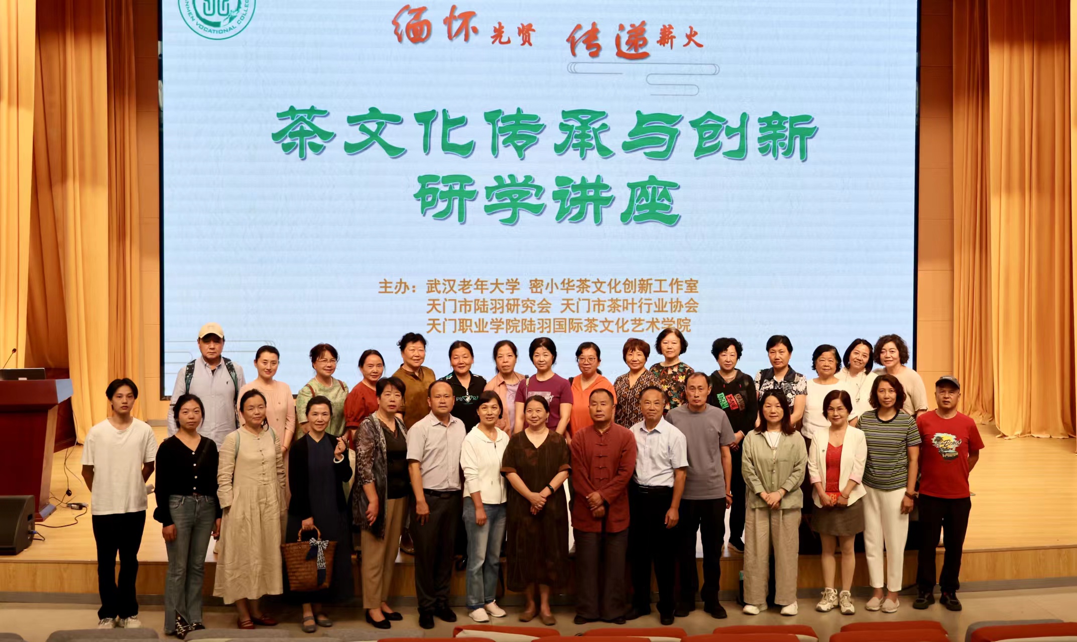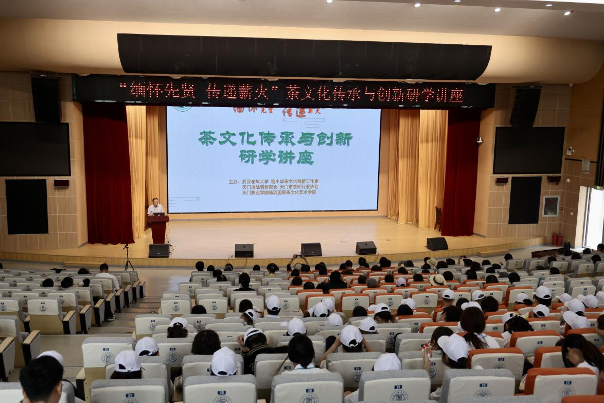 10月12日,金秋重阳,为缅怀茶界先贤,传递茶道薪火,促进天门茶文化职业教育产学研融合发展,天门职业学院陆羽国际茶文化艺术学院联合武汉老年大学密小华茶文化创新工作室、天门市茶叶行业协会与天门市陆羽研究会共同举办“缅怀先贤、传递薪火”茶文化传承与创新研学讲座。来自武汉老年大学茶艺养生班学员及陆羽国际茶文化艺术学院的师生共500余人参加讲座。