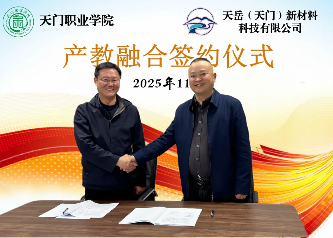 此次产教融合协议的签订,搭建了学校与企业资源共享、优势互补的协同发展桥梁。双方将以此次签约为契机,进一步细化合作内容、创新融合模式,在人才联合培养、实训基地建设、技术成果转化等方面开展深度合作,共同打造区域产教融合示范项目,为天门及周边地区新材料产业发展注入人才动力与创新活力,携手书写产教协同育人、共促产业升级的新篇章。