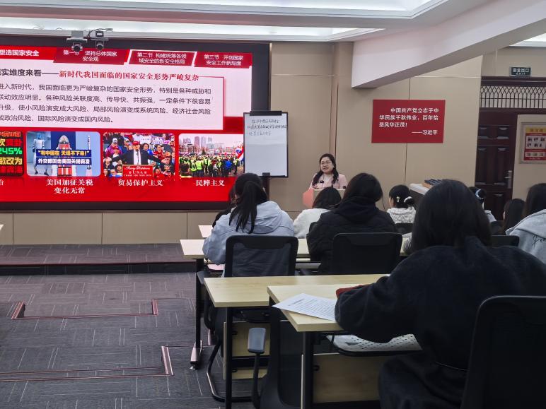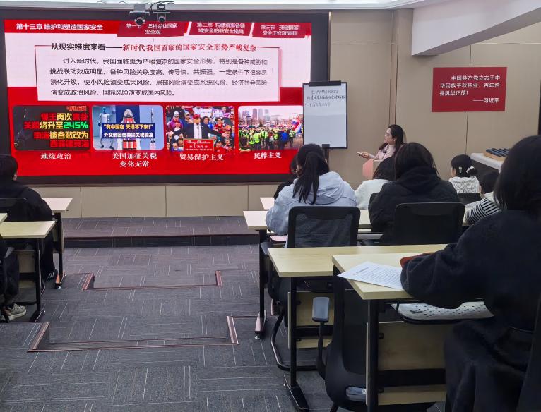 在讲授“统筹发展和安全”时,她结合芯片之争等现实案例,从多维度剖析发展与安全的辩证关系,强调“发展和安全是一体之两翼、驱动之双轮”,引导学生理解以新安全格局保障新发展格局的战略意义。