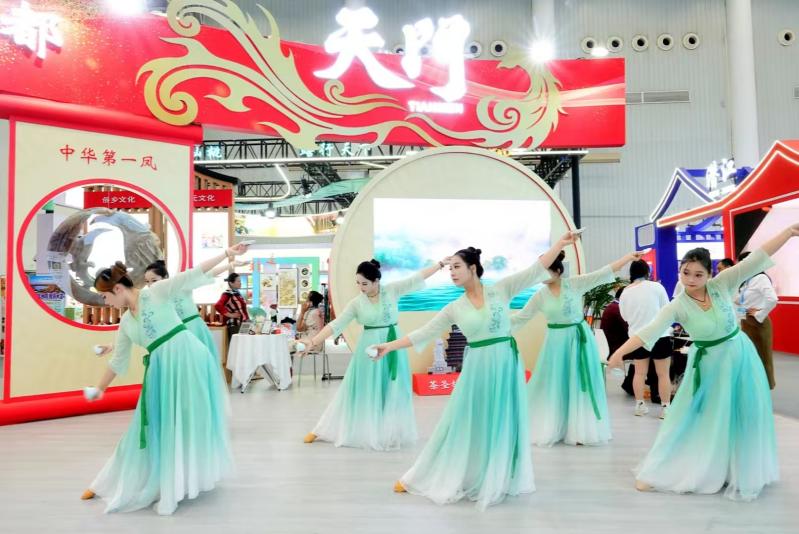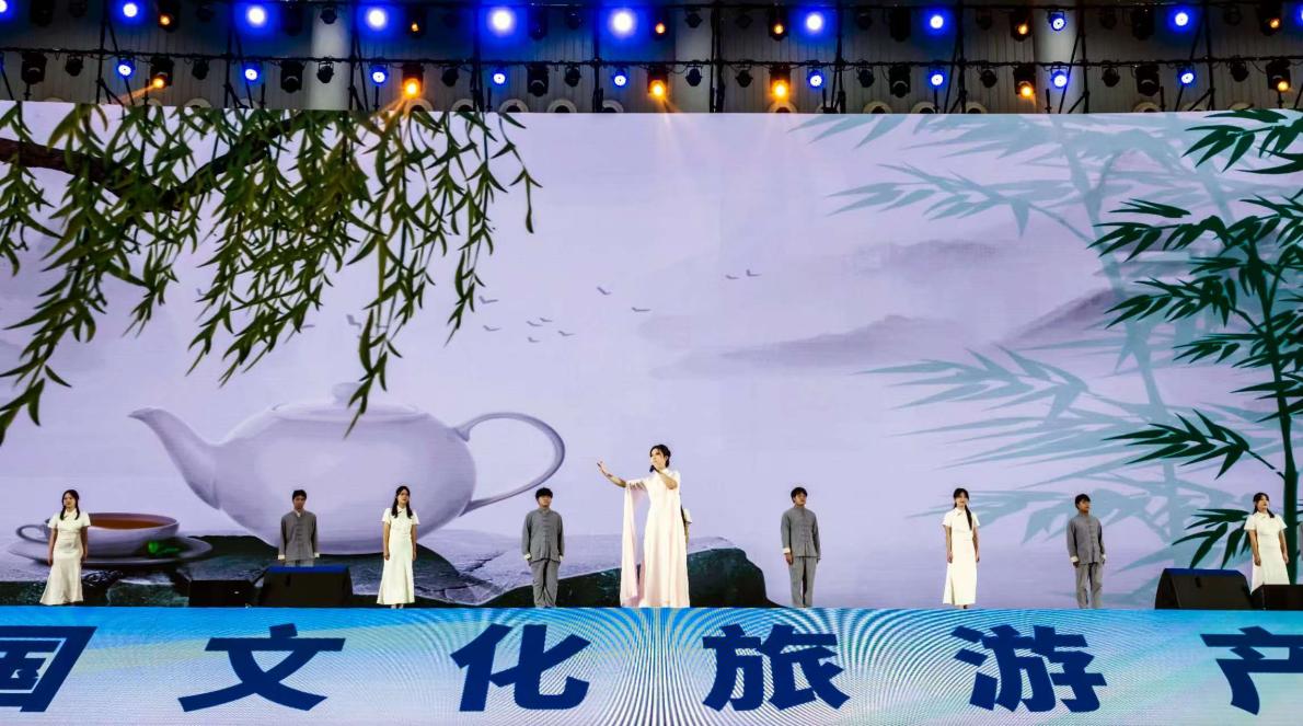 在天门馆展区以历史场景的沉浸式还原表演以“唐煎宋点明清泡”为主线展开:唐代煎茶:学生们使用鎏金茶釜,演示茶圣陆羽《茶经》中的“三沸之法”,茶汤沫饽如雪,再现“碧云引风吹不断,白花浮光凝碗面”的盛唐气象。宋代点茶:借助建盏与茶筅,学子们现场击拂出“云头雨脚”纹样,还原宋徽宗《大观茶论》中“妙非一途”的斗茶技艺。该节目还创新引入舞蹈同台协作表演,通过精准动作来控制节奏、演绎茶艺表演等,实现舞蹈音乐与茶文化艺术的创新融合,现场许多观众举起手机记录这一创新表演。当学子们用鎏金茶釜完成“三沸之法”时,茶汤沫饽如雪,现场观众纷纷举起手机记录这“碧云引风吹不断”的盛唐气象;