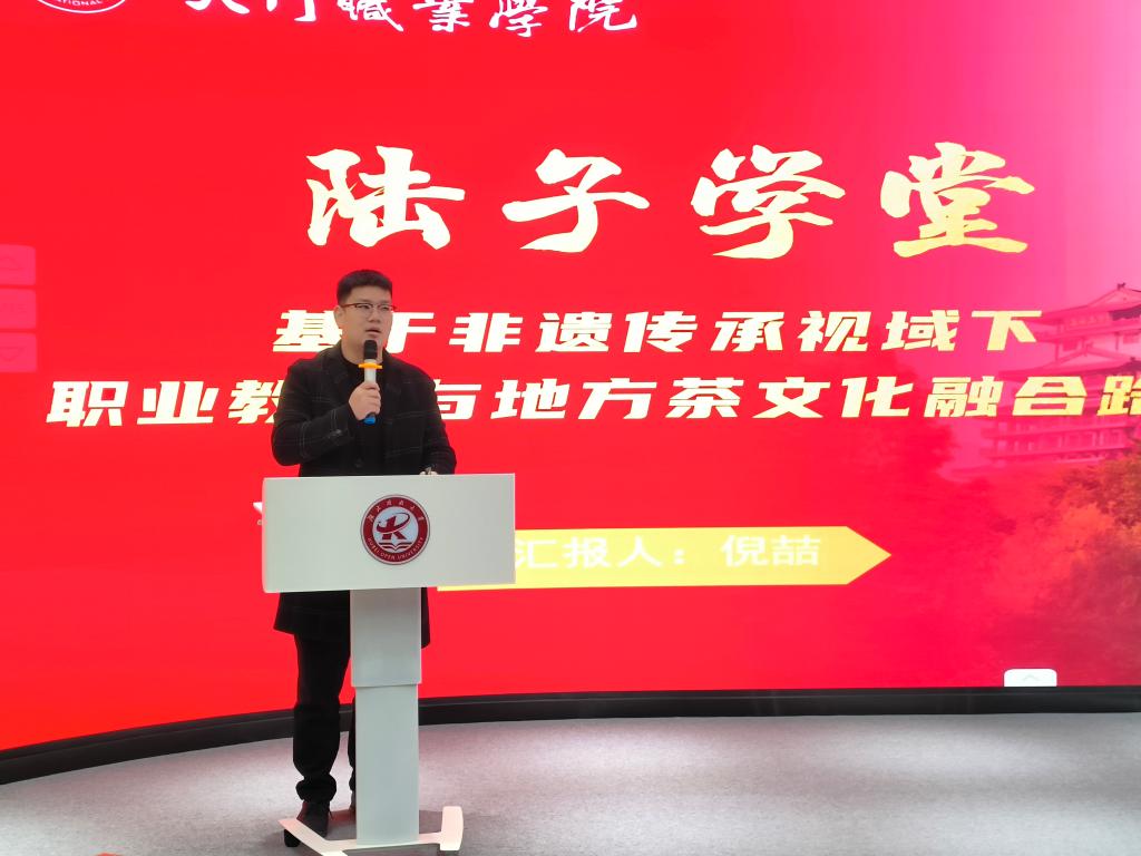 11月27日,“陆子学堂”工作室成果亮相湖北省职教研究院荆楚非遗文化传承研究中心,工作室主持人倪喆就承担的专项课题《基于非遗传承视域下职业教育与地方茶文化融合路径——以陆子学堂为例》进行成果汇报。