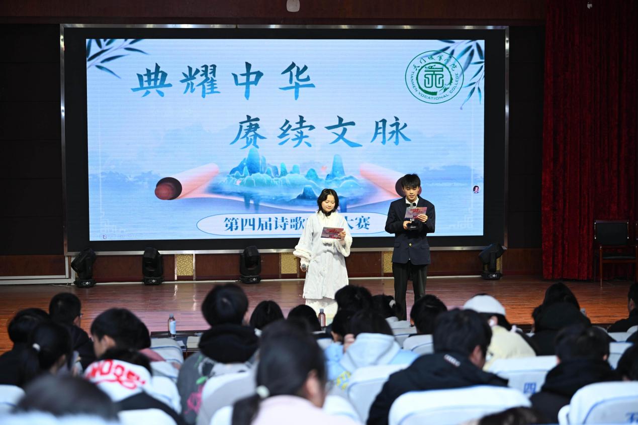 为传承中华优秀传统文化,厚植青年学子家国情怀,12月25日天门职业学院以“典耀中华,赓续文脉”为主题的第四届诗歌朗诵大赛决赛在C栋报告厅隆重举行。本次大赛由教务处和公共课部联合主办,组宣部、学工处、校团委协办,语文教研组与玉湖文学社共同承办,在校内掀起了品读经典、传诵文脉的热潮。