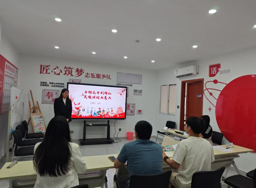 许行以“石榴花开别样红,民族团结共复兴”为主题,将中华民族共同体比作紧密相连的石榴籽,通过讲述各民族交往交流交融的历史与现实案例,深刻阐释了民族团结对民族复兴的重要意义。其激昂的语调与真挚的情感引发全场共鸣。