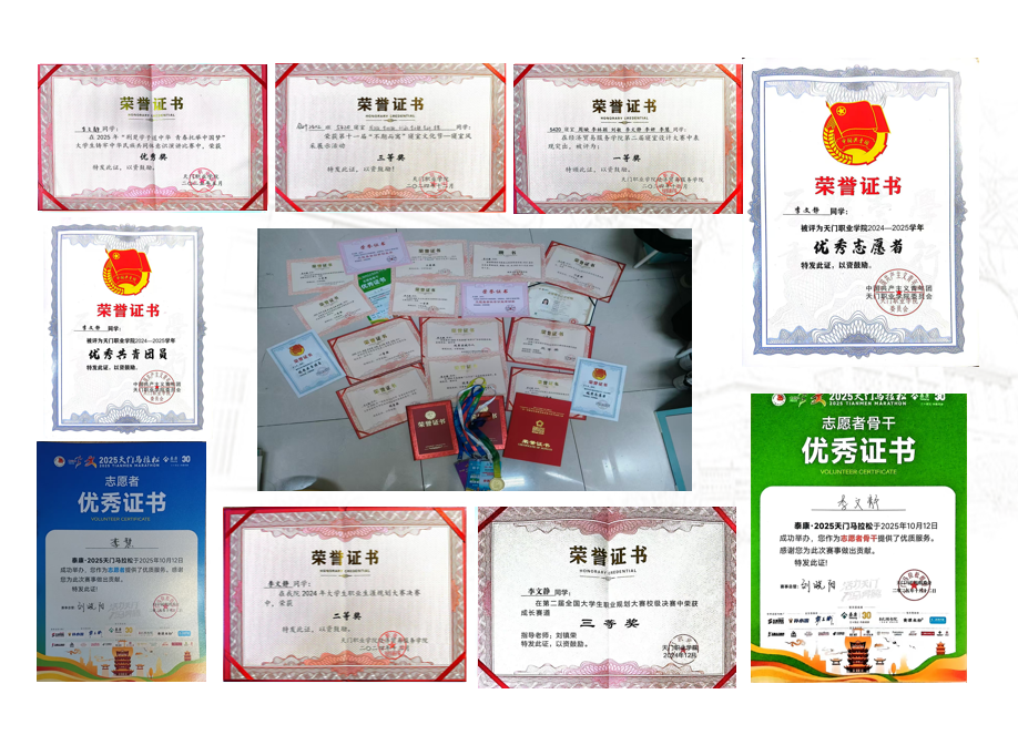当个人的版图逐渐清晰,她们开始思考如何将影响力延伸得更远。这便是她们绘制的第三笔——以“工作”和“服务”为尺,不断拓展成长的半径。寝室校学生会主席、讲解团副社长李文静,以180小时的志愿时长和“天门市马拉松骨干志愿者”的称号,诠释了责任与奉献;讲解社社长李林颖、组织部部长李妍、体育委员李慧,也分别在各自的学生岗位上发光发热。她们将“共同建设优良学风班”的理念从寝室带向班级,用行动书写着新时代大学生的担当华章。