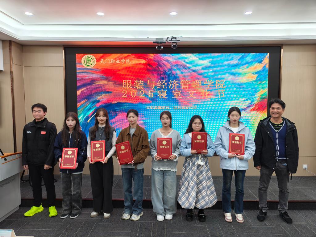 天门职业学院服装与经济管理学院2025年寝室文化节于11月13日在马克思主义学院报告厅圆满落幕。本次活动以“共筑温馨家园,绽放青春风采”为主题。经过前期初选,多个参赛寝室从全院100余个寝室中脱颖而出,进入现场演讲环节,并展开了激烈角逐。本次活动邀请了教师孟芸、李伟、黎淑婧、熊江以及学生代表孙澈、郭旭慧、沈思咏同学共同担任评委。