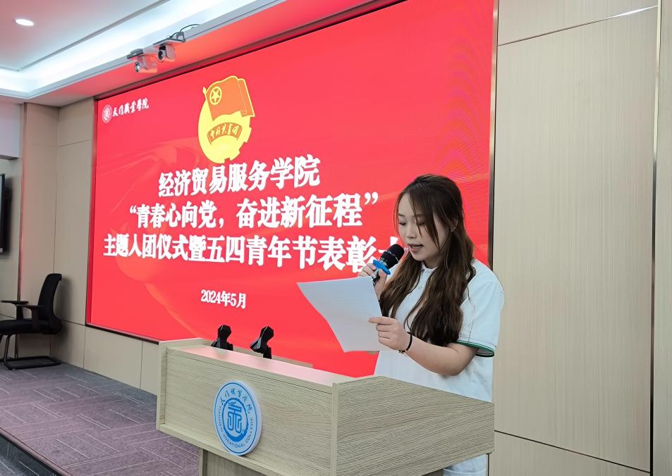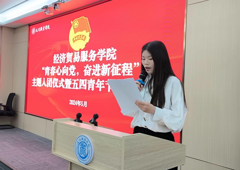 为深入学习贯彻落实党的二十大精神和习近平总书记关于青年工作的重要思想,增强团员先进性、光荣感和使命感,5月9日,经济贸易服务学院在A栋二楼报告厅举行“青春心向党 奋进新征程”主题入团仪式暨五四青年节表彰大会。天门职业学院青年教师团支部书记汪文澳、经济贸易服务学院团总支书记欧阳,优秀团员代表和全体新团员参加了此次活动。