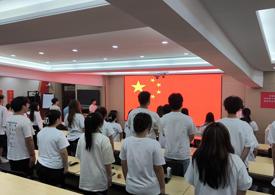 大会在庄严的国歌声中拉开序幕,全体师生肃然起立,高唱国歌,嘹亮的歌声响彻整个会场,炽烈的爱国热情在师生们心中激荡。