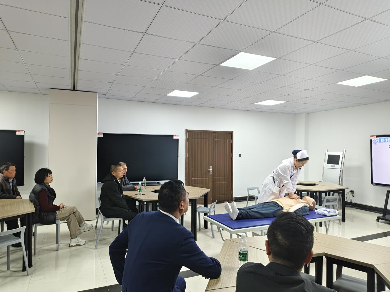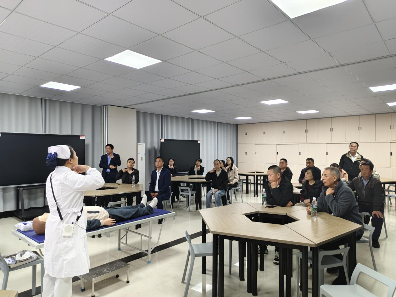 最后,与会人员前往医护学院共同学习了急救知识。医护学院的杨鑫老师为大家演示了关于心肺复苏的急救技能,并详细讲解了急救过程中的注意事项和操作流程。通过实际操作和实践,大家进一步提高了急救意识和能力。