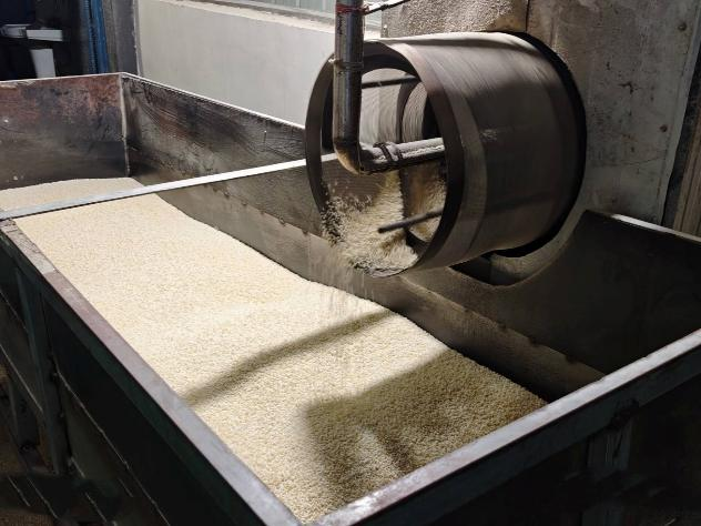 调研期间,团队前往糯米烘干基地和炒米生产基地,实地参观并详细了解了糯米的烘干工序以及传统炒米的制作工艺,从糯米烘干、出米、选米、炒制到包装,队员们认真记录每一个环节,感受传统美食背后所蕴含的劳动智慧与文化传承。