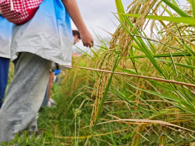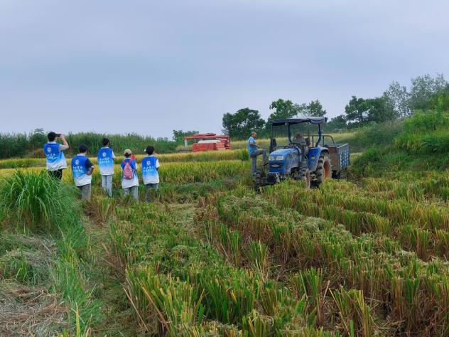 在村干部的引导下,团队成员步入稻田,实地观察稻米的生长状况与农民收割稻米的场景。金黄的稻穗在风中轻轻摇曳,收割机正快速地进行收割。队员们与农民深入交流,了解播种及稻谷成熟过程中需要注意的问题,深刻体会到“粒粒皆辛苦”的深刻含义,也更加理解农业生产的艰辛与价值。