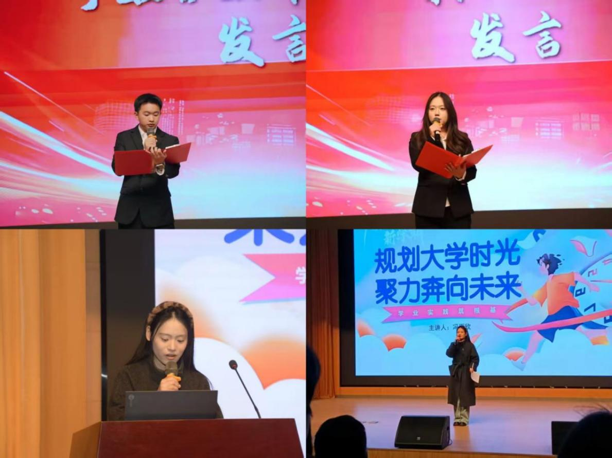 随后,冯雨欣同学作了主题为《规划大学时光,聚力奔向未来》的职业生涯规划经验分享,通过自己的学习、竞赛、实习、实践经历为在场的学生干部的大学生涯规划提供参考。学生会主席团代表发言表达了带领全体成员服务同学的决心,新生代表也抒发了加入学生会的感想与期待。