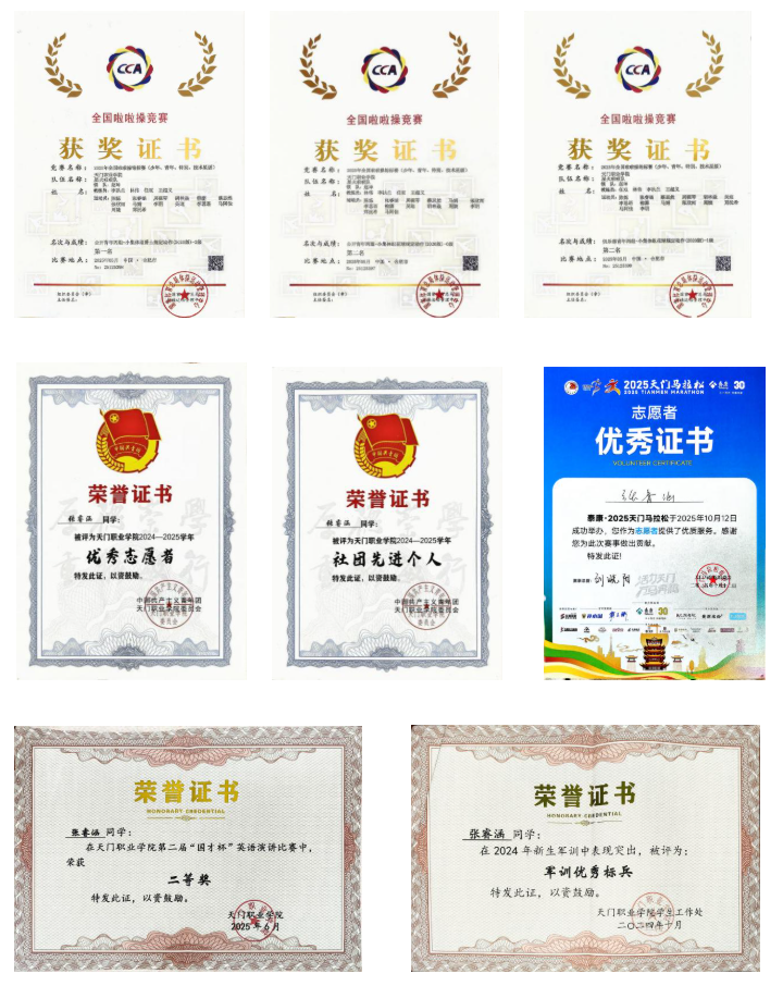 张睿涵积极参与校园文化与社会实践,实现全面发展。她担任大学生记者团剪辑部副部长,用镜头记录校园故事;作为啦啦操队主力,在全国锦标赛中夺得1个第一、2个第二的好成绩;此外,她在英语演讲、志愿服务等领域均表现突出,多次获评“优秀志愿者”“社团先进个人”等称号。辅导员刘镇荣老师指出:“学院始终将立德树人贯穿培养全过程,通过个性化指导帮助学生挖掘潜能,张睿涵的成长正是学院‘三全育人’理念的缩影。”