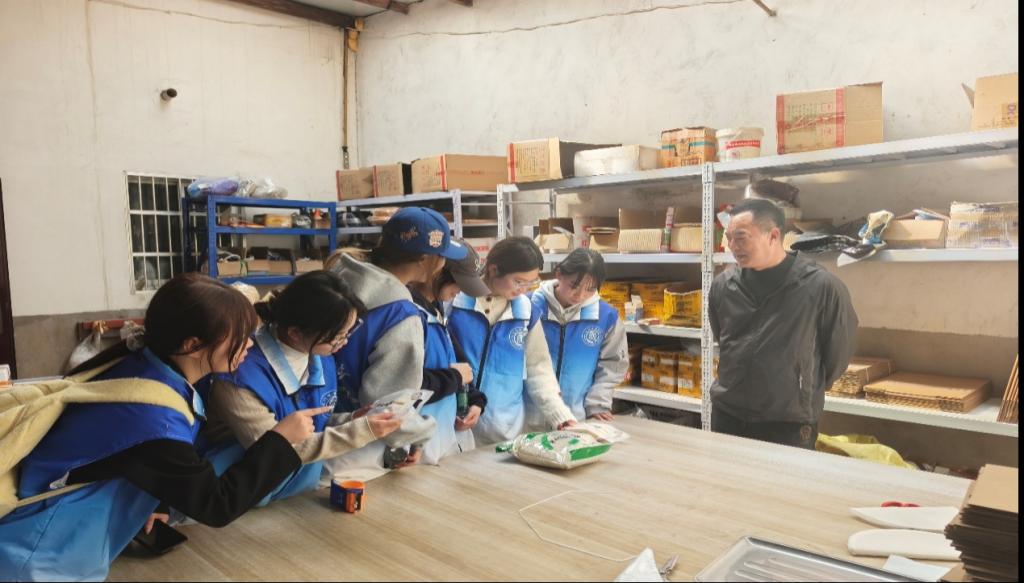 活动当日,参与师生集合后乘车前往明庙村,开展多项行动:志愿者分组为村内困难户、留守户送去米油等生活物资,贴心协助清理居所卫生并与村民亲切交流、传递关怀;垃圾清理组对村口至村民广场沿线开展清扫,分工协作捡拾各类杂物、分类装袋清运,美化乡村道路环境;同时学院还组织25级电子商务专业学生代表走进炒米加工基地、农村电商示范基地开展产业游学,实地了解乡村特色产业生产流程与农村电商运营模式,结合专业探讨打造农产品直播间,以专业力量助力乡村产业发展。