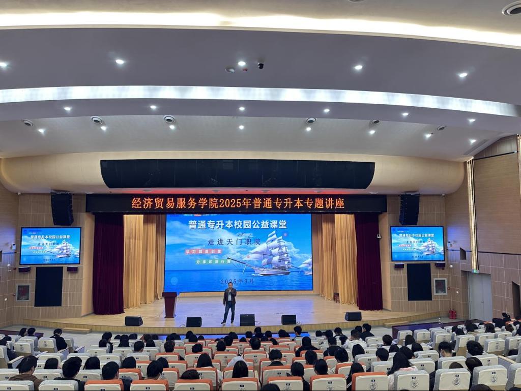 为助力学生明确学业规划,提升学历深造意识,2025年3月19日晚19:00,天门职业学院经济贸易服务学院在图书馆报告厅举办了一场专升本公益讲座。23级全体学生及24级网络营销与直播电商专业学生积极参与,讲座由副院长张容容致辞拉开帷幕,专升本培训中心主任雷剑朗老师主讲。