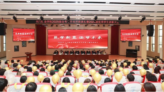 12月11日下午,天门职业学院2025级自学考试开学典礼暨2024级优秀学院表彰活动在三号教学楼报告厅隆重举行。武汉科技大学继续教育学院副院长成红峰,武汉科技大学继续教育学院自考办主任王新颖,长江教育专修学院项目部长彭满堂,天门职业学院党委委员、副校长颜锦时,我校继续教育学院、智能制造学院相关领导和嘉宾出席了此次活动。