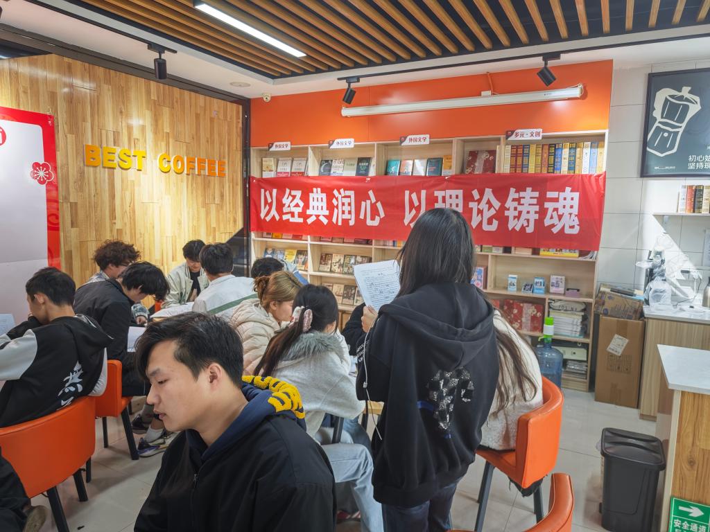 为深入学习贯彻党的二十届历次全会精神,推动思想政治理论课教学改革走深走实, 3月24日下午,一场别开生面的毛泽东同志原著读书会在我校操场旁倍阅书店举行。本次活动是《毛泽东思想和中国特色社会主义理论体系概论》(以下简称“毛概”)课程的一次创新实践,来自护理专业和工程造价专业的学生,围坐一堂,静心品读经典,交流思想火花。