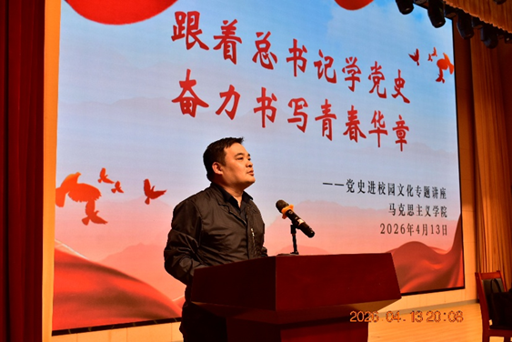 阳军副书记代表学校对万志军馆长一行的到来表示热烈欢迎与衷心感谢。他指出,此次党史专题讲座是我校马克思主义学院2026年文化育人系列活动的重要内容,是校地协同育人、红色文化铸魂的生动实践,希望同学们认真学习、深刻领会,在党史学习中坚定理想信念、勇担时代重任。