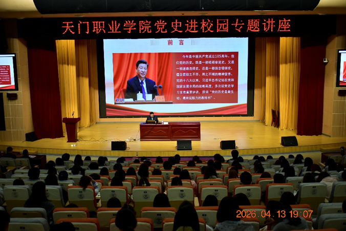 为热烈庆祝中国共产党成立105周年和长征胜利90周年,推动党史学习教育常态化、长效化、走深走实,引导青年学子从百年党史中汲取奋进力量,4月13日晚,我校在图书馆报告厅成功举办党史进校园文化讲座。本次讲座特邀天门市档案馆党总支书记、馆长万志军主讲,学校党委委员、副书记阳军出席并主持讲座,医护学院25级近400名学生到场聆听。