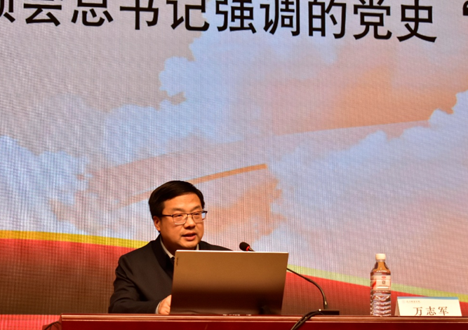 讲座中,万志军馆长以“跟着总书记学党史 奋力书写青春华章”为主题,围绕为何学、学什么、怎么学、青年何为四个维度,系统阐释了党史学习的重要意义、核心内容与科学方法。他结合丰富的理论知识与地方红色资源,引导同学们深刻领会“中国共产党为什么能、马克思主义为什么行、中国特色社会主义为什么好”,鼓励大家立大志、明大德、成大才、担大任,将个人理想融入民族复兴伟业。