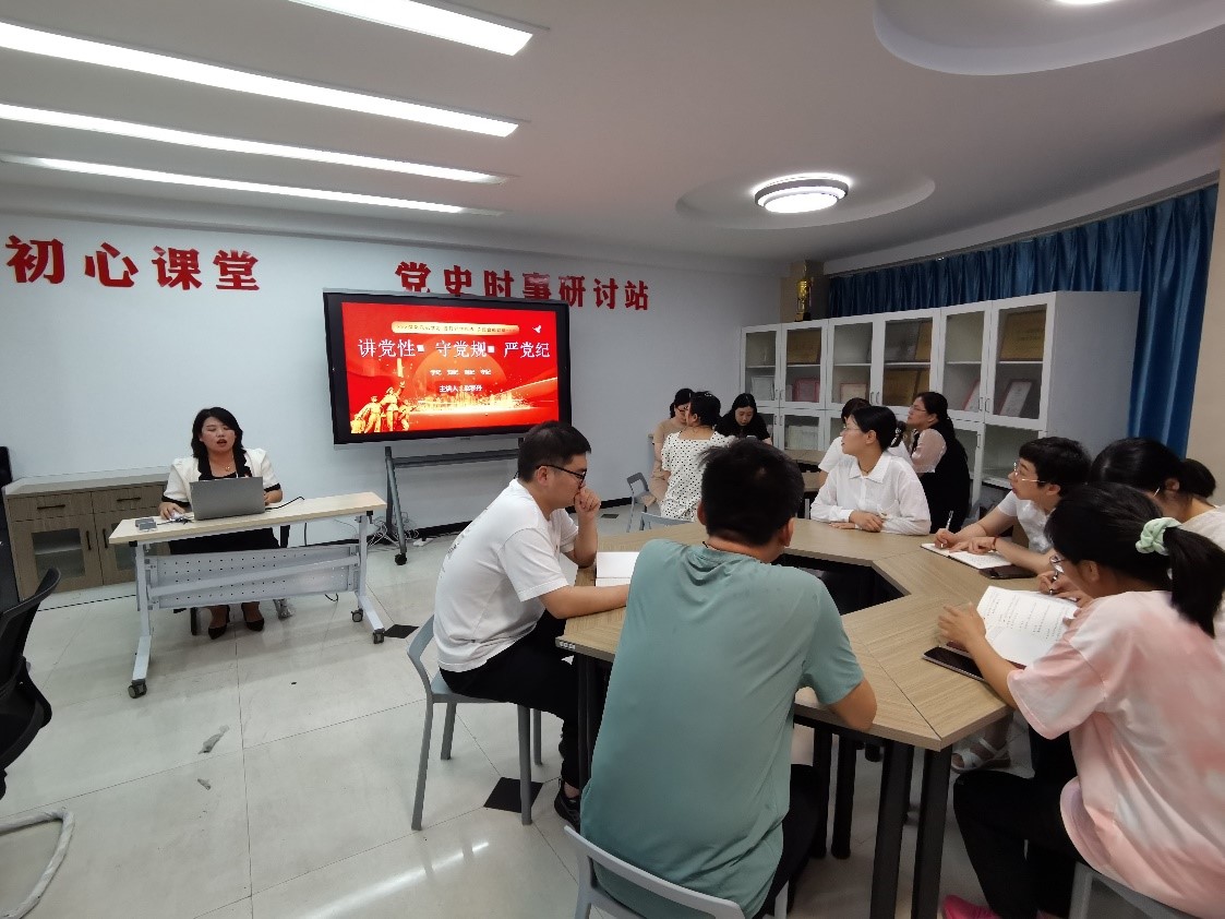 聆听一堂党课。医护学院党支部副书记赵梦丹以“讲党性、守党规、严党纪”为题给大家带来了一堂别开生面的党课,她从“为什么?存在什么问题?怎么做?”几方面介绍了讲党性、守党规、严党纪的必要性及重要性,并强调党员个人要做到“五有”,做有追求、有正气、有责任心、有标准、有底线的党员教师。