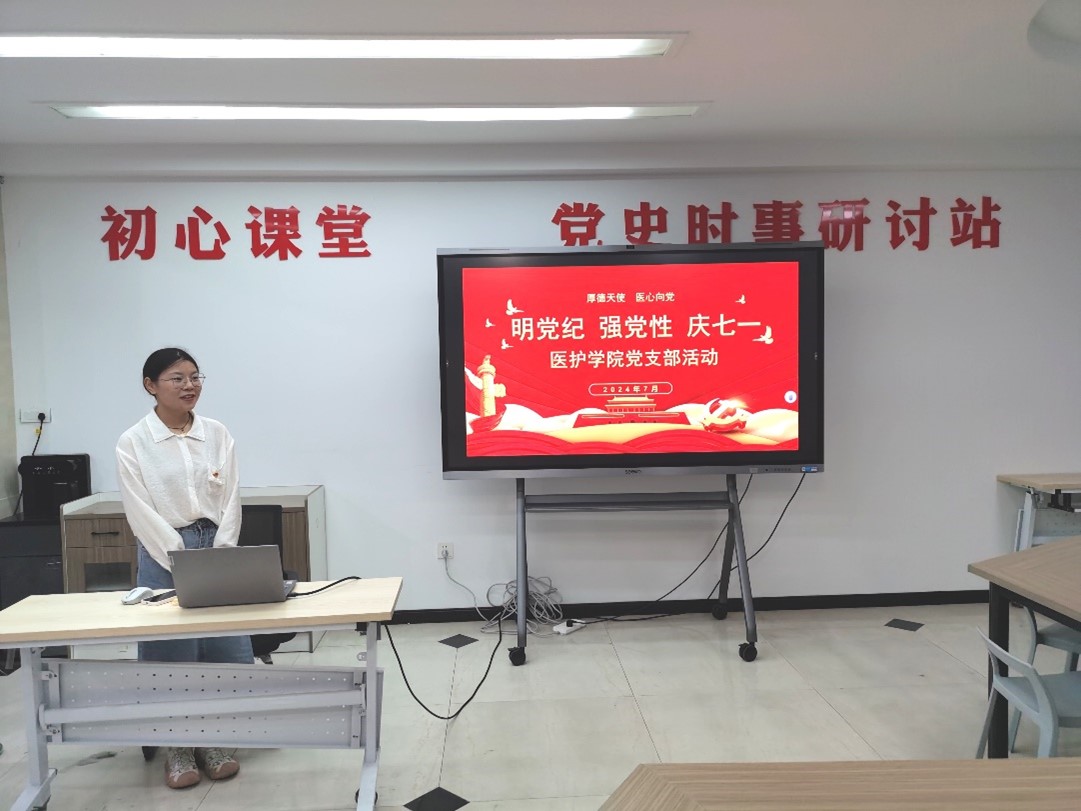 为庆祝中国共产党成立103周年,弘扬伟大建党精神,进一步引导党员教师坚定理想信念、凝聚奋进力量,7月1日,医护学院党支部组织开展“明党纪、强党性、庆七一”主题党日系列活动。全体党员教师参加。
