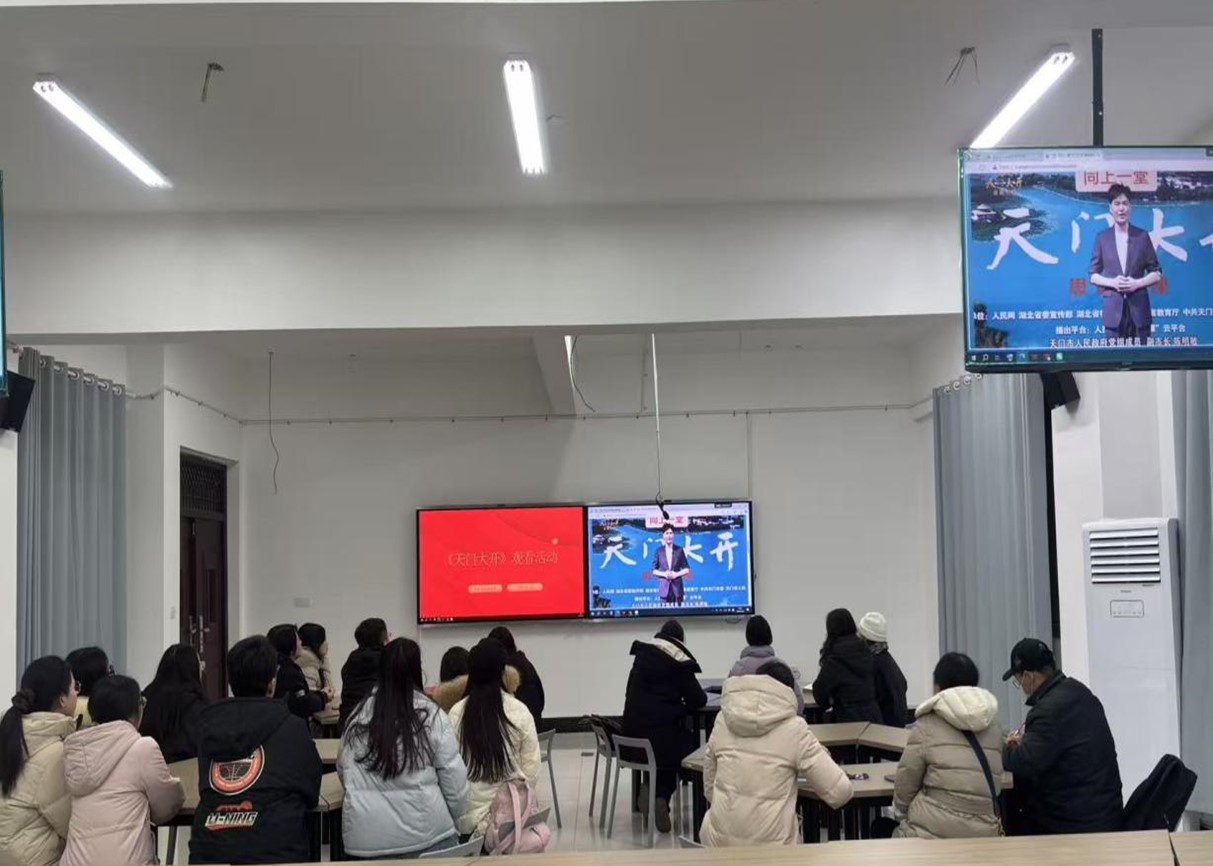 1月22日19时,由人民网、湖北省委宣传部、湖北省委网信办、湖北省教育厅、中共天门市委、天门市人民政府联合主办的城市思政大课《天门大开》正式开播。医护学院党支部积极响应号召,以“线上+线下”双轨并行模式组织全体党员开展专题学习,推动思政教育走深走实,凝聚奋进力量。