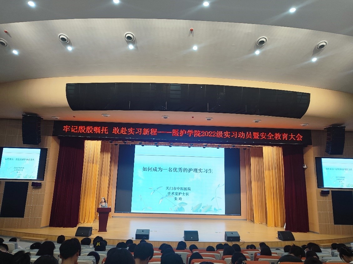 天门市中医院手术室护士长朱玲以“如何成为一名优秀的护理实习生”为题,从实习的基本素质、实习前的准备、实习的目标要求及职业规划等几个方面进行了深入浅出的讲解。