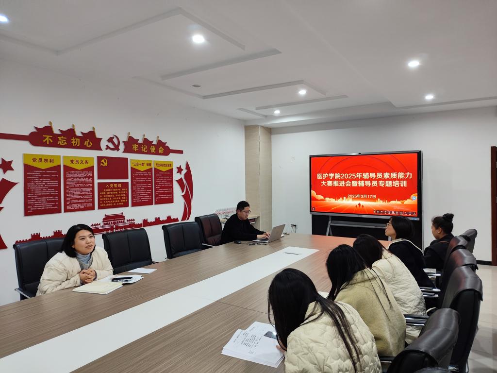 为进一步加强辅导员队伍建设,提升思政教育工作水平。医护学院于3月17日组织开展“2025年辅导员素质能力大赛专题培训”。本次培训由医护学院副院长胡伟伦主讲,全体专兼职辅导员参加学习。