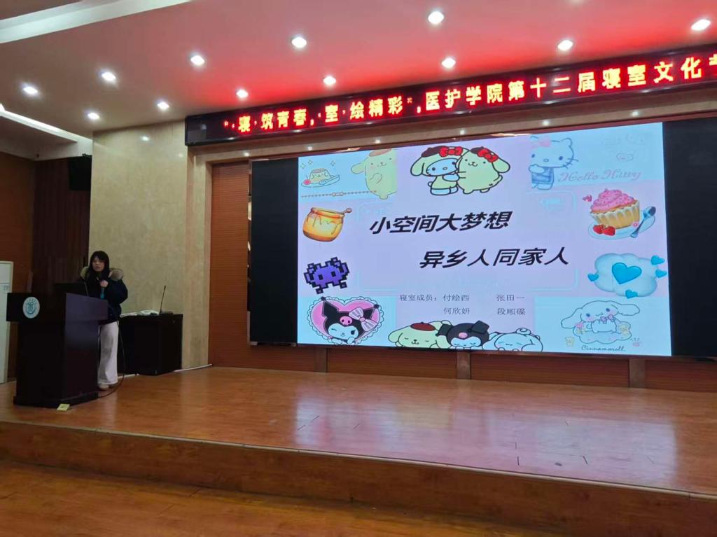 为进一步丰富校园文化生活,营造和谐温馨、积极向上的寝室氛围,增强寝室成员的凝聚力与归属感,展现医护学院学子的青春风采。11月9日,医护学院在B栋报告厅成功举办第十二届寝室文化节展示比赛。