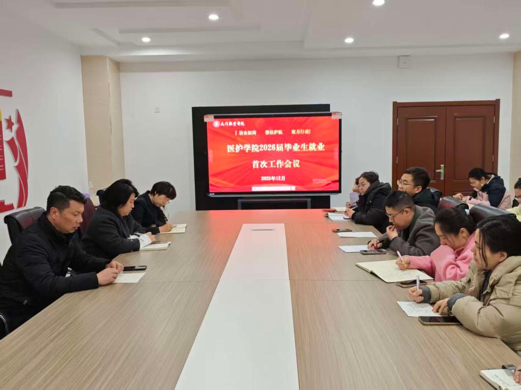 为切实做好2026届毕业生就业工作,帮助同学们尽早明确职业发展方向,增强就业备考的紧迫感和针对性,12月31日,医护学院在B栋会议室召开了2026届毕业生第一次就业工作部署会议。学院党支部副书记赵梦丹主持会议、医护学院院长王冰、副院长卢明华出席,毕业班全体辅导员参加了本次会议。