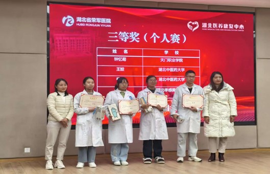 12月21日,在湖北省荣军医院举办的第一届康复医学科实习生康复技能大赛中,我校康复治疗技术专业3名实习生凭借扎实的专业知识和出色的实践技能,脱颖而出,取得了优异的成绩,其中康复2201班徐铭君获得个人赛一等奖,康复2202班江美男作为小组队长带领团队获得团体赛一等奖,康复2202班钟忆菊获得个人赛三等奖。本次竞赛包括理论知识答题、实际操作两个环节,旨在全面考查学生的专业素养和综合能力。我校学生在竞赛中展现出良好的精神风貌和扎实的基本功,为学校赢得了荣誉。