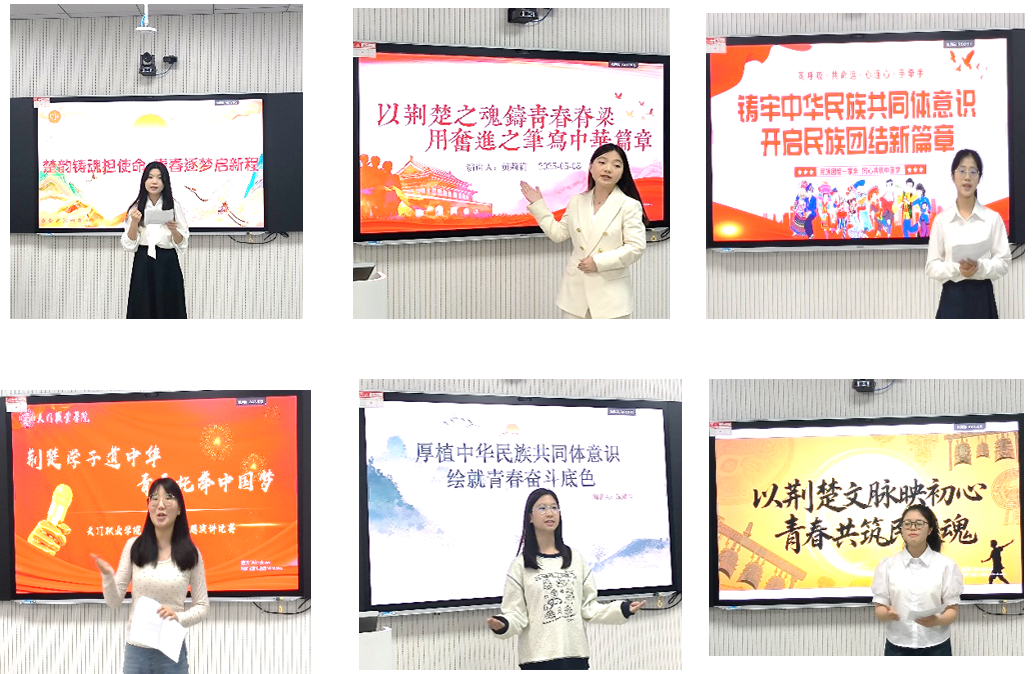 来自护理2416班的选手梁万晴以《以荆楚文脉映初心 青春共筑民族魂》为题,从屈原的“路漫漫其修远兮”讲到当代科研青年的创新实践,诠释了中华精神的薪火相传;护理2412班选手蓝小艺,以《中华民族共同体意识的形成与发展》为题,结合“五四运动”展望如今青年新使命,展现出荆楚学子深厚的家国情怀和昂扬的青春风貌。