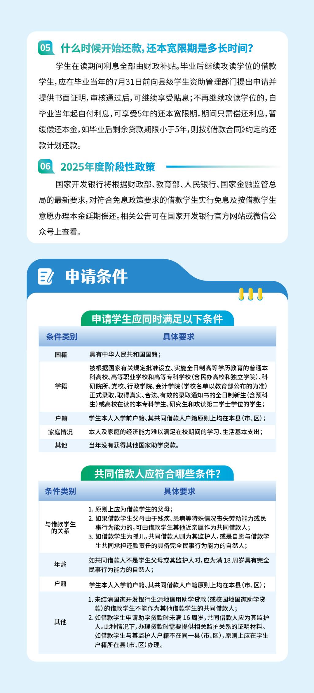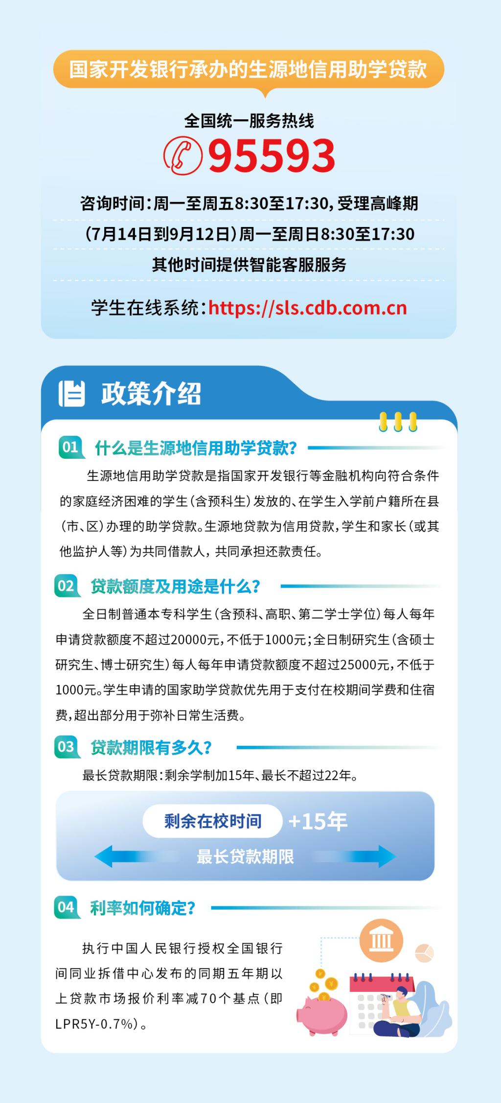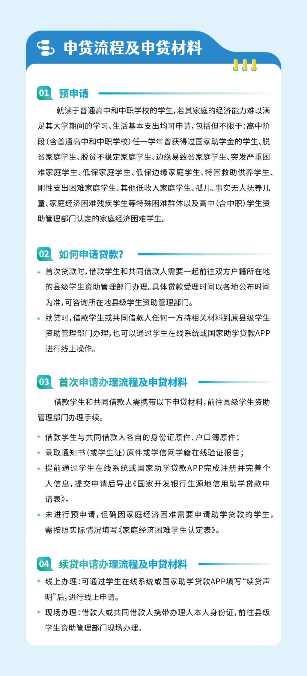 (1)专升本学生:录取后需在2025年8月31日前向生源地资助中心申请“展期”,变更就学信息,享受继续贴息政策。