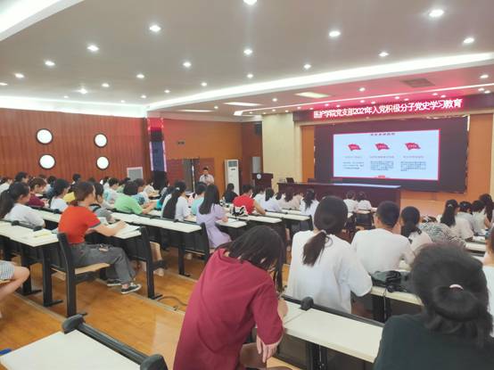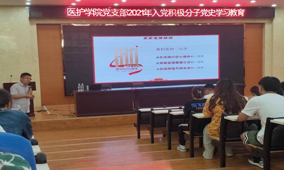 本网讯(通讯员 卓鑫)为深入学习贯彻习近平总书记在党史学习教育动员大会上的重要讲话精神,加强入党积极分子的党史知识培训,6月8日下午,医护学院党支部在B栋报告厅开展党史学习教育讲座。此次讲座特邀天门市党史学习教育宣讲团成员、天门职业学院思政课部主任赵坤老师主讲。医护学院党支部2021年全体入党积极分子、发展对象参加此次讲座。